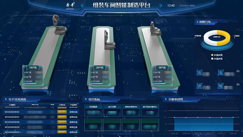 在奔丰座椅 IMES 数字化生态体系中,装配车间依托智能化的全流程管理,成为成品座椅质量把控的最后一道关键环节。